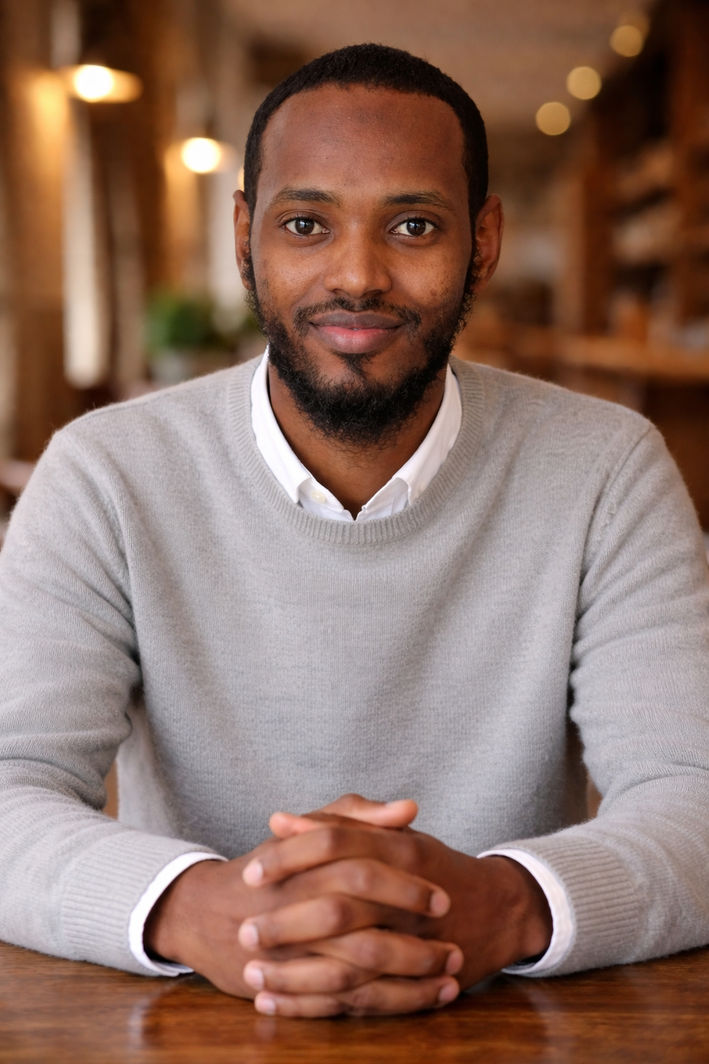 - Smile gently to appear friendly yet professional.